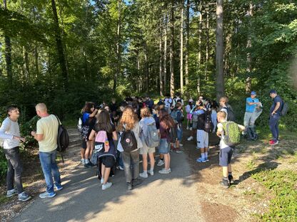 Eine gute Tradition ist der Sternmarsch der Real- und Sekundarschule Gelbhausgarten. Aus unterschiedlichen Richtungen wanderten 17 Klassen mit rund 400 Schülerinnen und Schüler am 26. August auf unterschiedlichen Pfaden zum Ferienheim Büttenhardt, wo wir zu Gast sein durften und gemeinsam grillten. Unterwegs erkundeten einige Gruppen noch den Windpark Verenafohren oder bestiegen zum Beispiel den Jakobsfelsen.