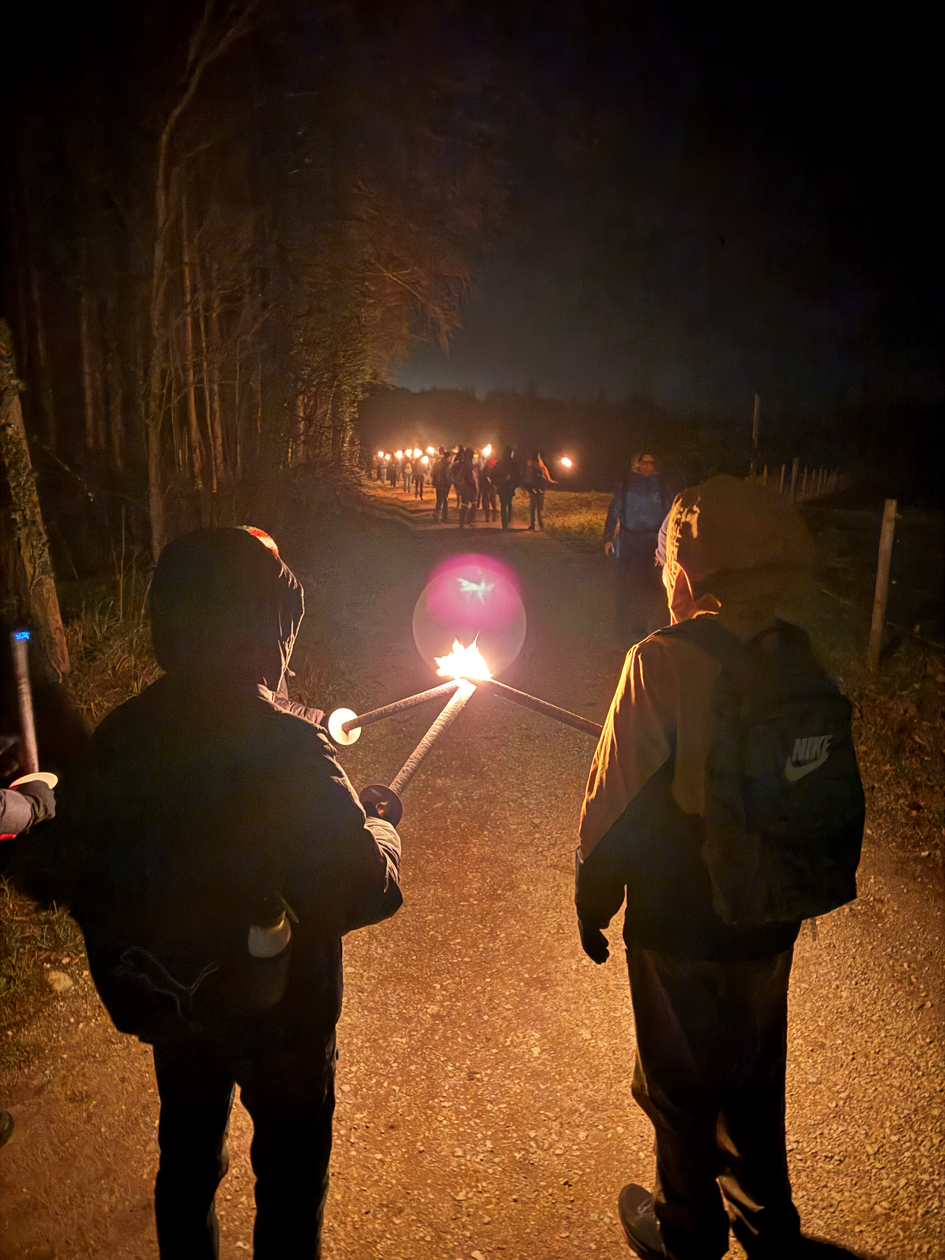Nach einer stärkenden Pause mit heissen Getränken und wärmendem Feuer absolvierten die ersten und zweiten Klassen einen abwechslungsreichen Postenlauf, der von den dritten Klassen vorbereitet worden war. Knifflige Fragen und herausfordernde Aufgaben sorgten für Bewegung und gute Stimmung.